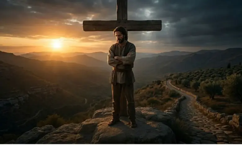 - Backgrounds are historically or spiritually framed, with churches, crosses, chapels, Jerusalem streets, and olive groves.