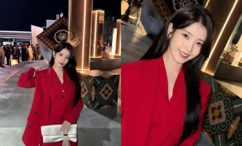 In one image, IU appears in an all-red suit. In another, she is seen in a royal school uniform beside actor Lee Jae-won, who plays a half-brother, and Lee Yeon, who plays a secretary. The atmosphere described around those photos is notably light, which matters because it reinforces the drama’s polished public image before viewers have fully settled into its story.