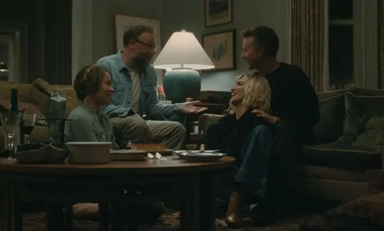 The invite at the center of the film looks simple on the surface: Joe and Angela host their upstairs neighbors for dinner. But the setup quickly shifts into something far more uneasy, with the marriage already fraying and the evening pushing both couples toward a crossroads.