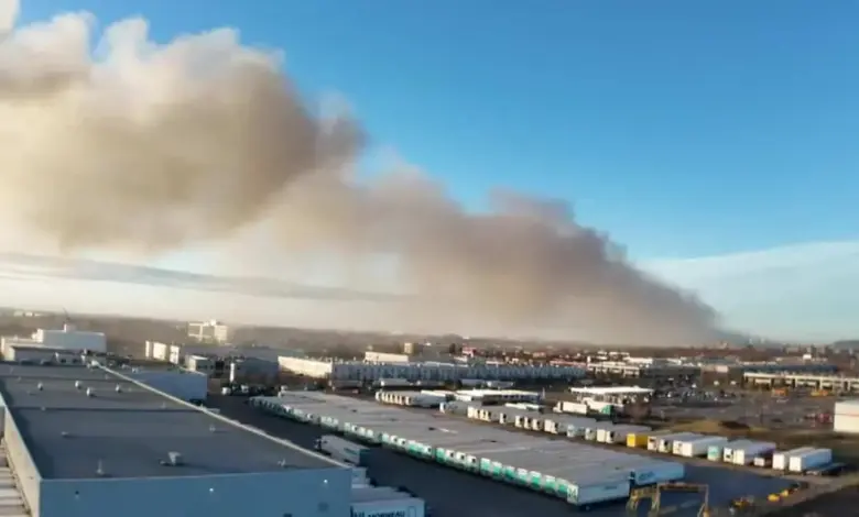 The Montreal Fire Safety Service was alerted at 5: 20 ET to an outdoor blaze at the site. About 50 firefighters were mobilized, and no injuries were reported. Even so, the fire was still active, traffic in the sector faced possible disruption, and the smoke remained visible from kilometers away.