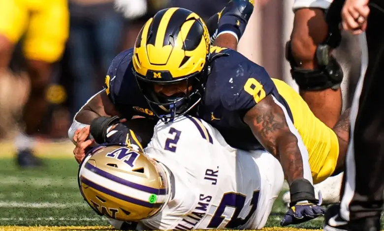 Moore was a two-year starter at Michigan and produced four sacks in one season and 10 sacks in the next. He served as a team captain in 2025 and fit Detroit’s preferred size at 6-foot-4 with an 81 1/4-inch wingspan. He also ranked among the Big Ten’s more productive pass rushers, posting a 17. 5 pressure rate in a draft preview by Dane Brugler.