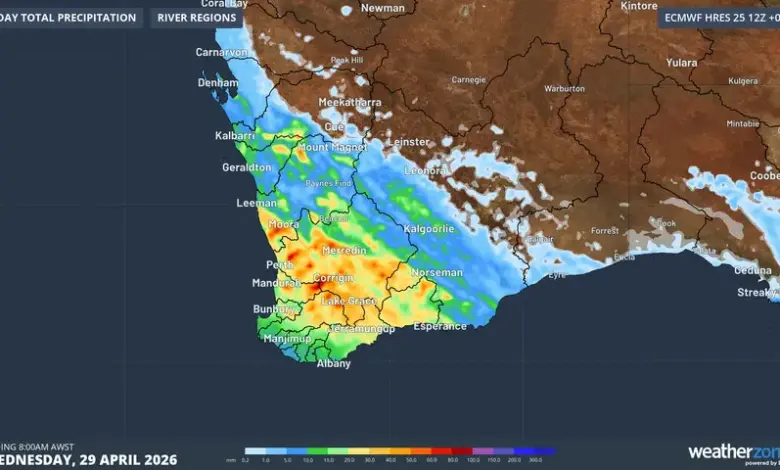Verified fact: Rainfall totals of 10–30mm are expected to be common across the Perth Metro by Wednesday morning, with isolated locations possibly exceeding 50mm. So far this month, Perth has received only 16mm of rainfall. The additional rainfall early this week could lift April totals above the monthly average of 39mm.